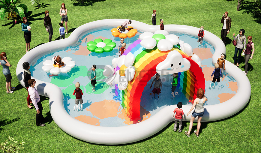 告别传统充气泳池的单一形态!花溪水池乐园以绽放的花朵与绚丽的彩虹为设计灵感,巧妙融合自然之美。乐园内处处可见精心设计的缤纷花朵元素,从池壁造型到内部装饰,营造出梦幻、活力、充满童趣的独特氛围。其高颜值的设计,相信会成为孩子们目光的焦点,带来强烈的视觉吸引力,让小朋友们流连忘返。