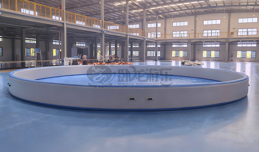 拉丝布水池选用柔性拉丝布,很好的平衡了柔软性与强度。当水池开始注水,材料自身的张力便发挥作用,使其自然成型。这种设计简化了安装步骤,让使用者能够迅速享受到玩水的乐趣,无需长时间等待专业人员的安装。