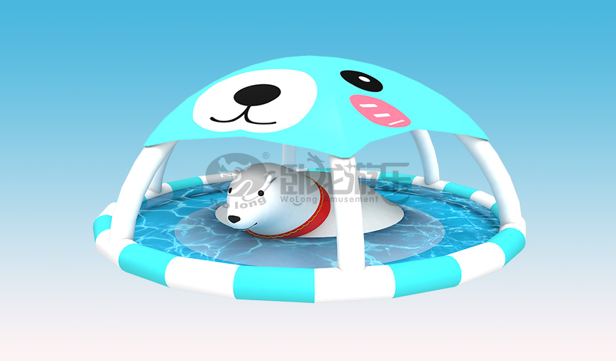 充气水池是夏天玩水必不可少的游乐设备载体,方便收纳和移动,可拓展的玩法比 较多样,四季皆可使用。有遮阳功能的充气水池很好的解决了夏天玩水太阳直射的问题。 湿蹦球是近年流行的夏季水乐园的明星玩法,在大造型上可以蹦跳可以滑水,美观 且好玩。 遮阳水池和湿蹦球结合,只需要在水池底部加上一圈连接结构即可,安装方便快捷, 可以快速的更换不同的湿蹦球造型。